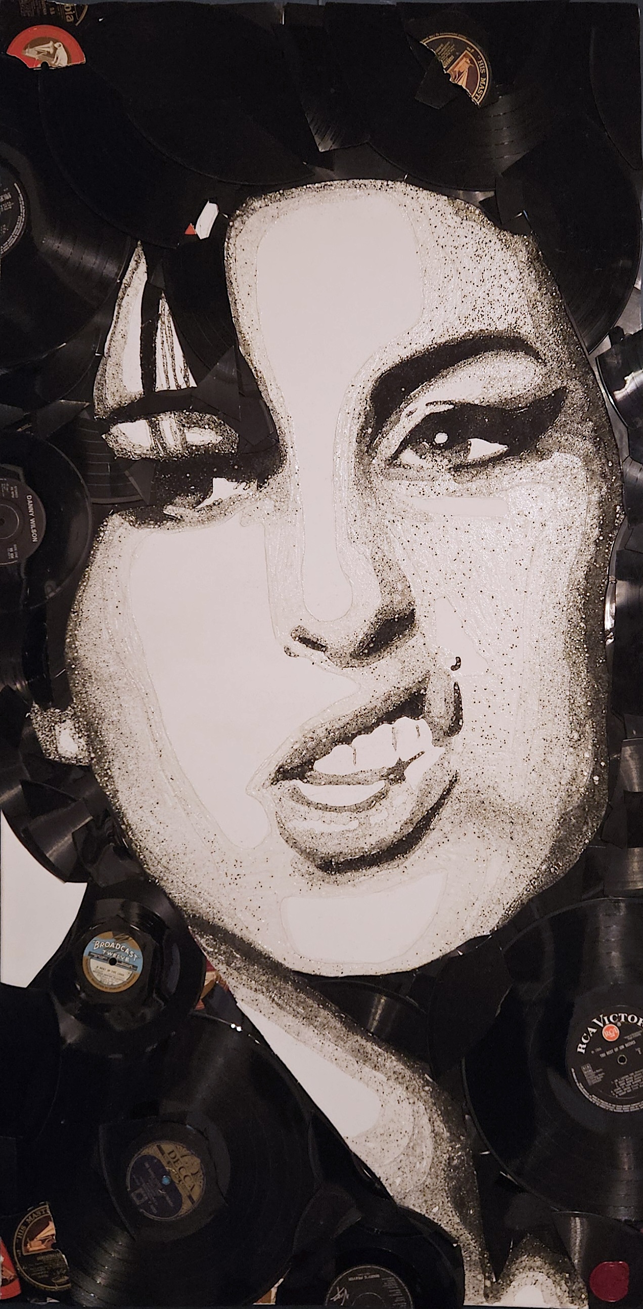 Original Artwork Created From Broken Records. No pigment is used to create the portrait, even the details are created from vinyl dust!