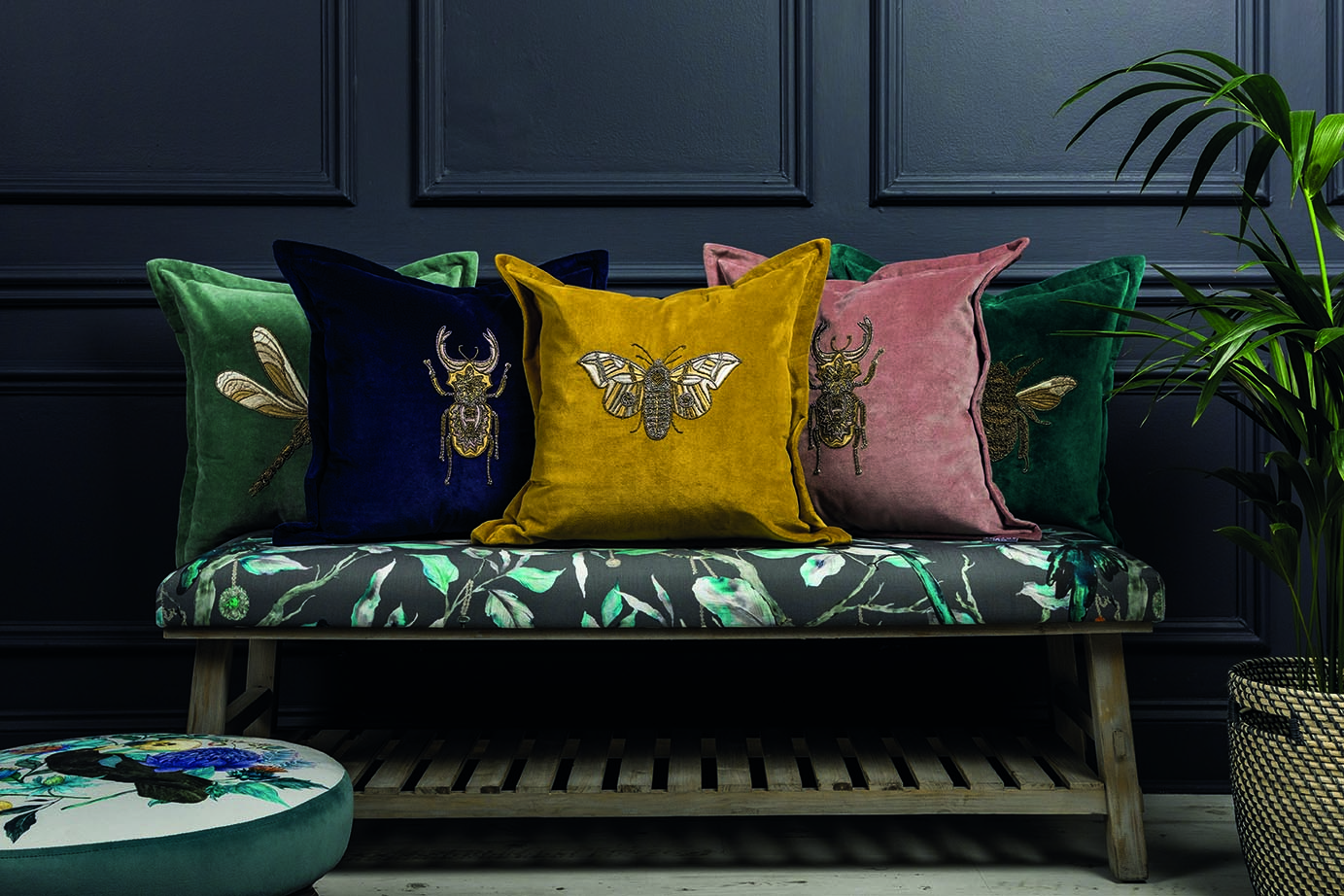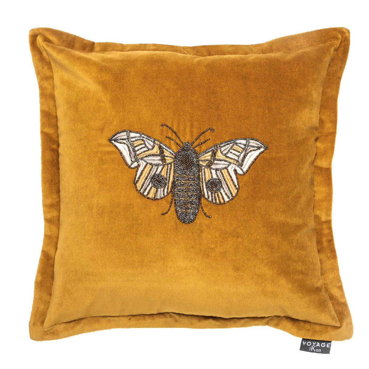 Part of the iKon Collection, the Luna Mustard velvet cushion is an effortless statement piece, the beaded embroidered moth design is set upon rich coloured velvet. Simple and very effective. The cushion is finished with a luxurious oxford edge velvet trim.